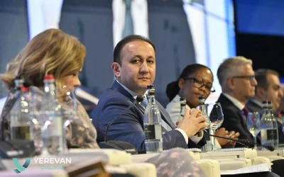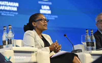 On May 27, the Yerevan Dialogue continues to gather guests from all over the world to discuss relevant issues. A high-level discussion on the future of global cooperation recently gathered high-ranking officials from all over the world, including Mnatsakan Safaryan, Deputy Minister of Foreign Affairs of Armenia; Lasha Darsalia, Deputy Minister of Foreign Affairs of Georgia; Andrew Rosindell, Member of Parliament of the United Kingdom; Minna-Liina Lind, Deputy Minister of Foreign Affairs of Estonia; Ahmad Saidmurodzoda, Deputy Secretary General of the Shanghai Cooperation Organization; Sarah Mosoetsa, Chief Executive Officer of the Human Sciences Research Council of South Africa; and Kei Koga, Associate Professor at Nanyang Technological University of Japan. The panel was moderated by Lisa Singh, Chief Executive Officer of the Australia India Institute.