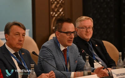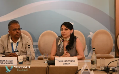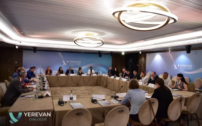 On May 27, the Yerevan Dialogue international conference featured a closed-door session titled “Strengthening Information Integrity on Climate Change and Other Environmental Issues,” organized in partnership with the Partnership for Information and Democracy with participation of Robert Abisoghomonyan, Deputy Minister of Foreign Affairs of Armenia, high-ranking officials from different countries, Ambassadors and experts.