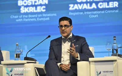 A powerful conversation unfolded on the global stage, uniting key figures committed to defending international justice, including Anna Vardapetyan, Prosecutor General of Armenia; Osvaldo Zavala Giler, Registrar of the International Criminal Court; Boštjan Škrlec, Chair of the Board on Relations with Partners at Eurojust; and Nancy Okail, President and Chief Executive Officer of the Center for International Policy, USA. The panel was moderated by Sheila Paylan, International Human Rights Lawyer and Senior Legal Consultant at the United Nations.